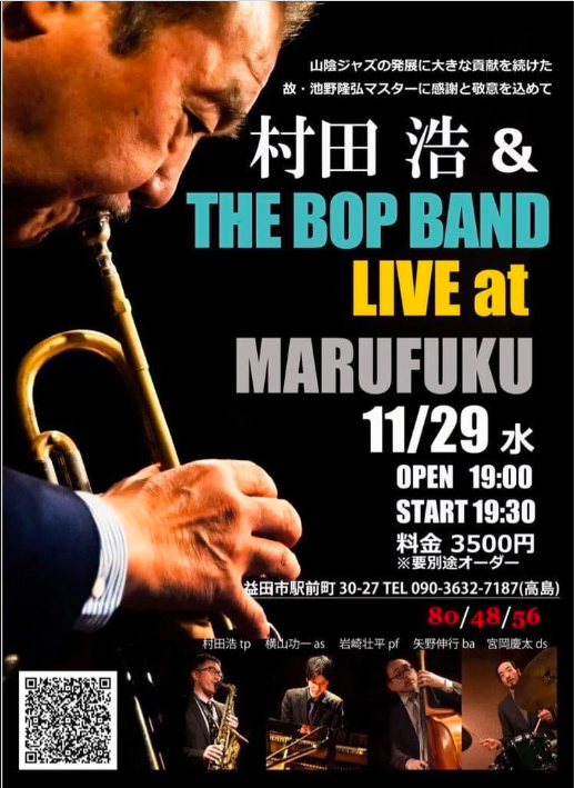 | 2023年11月29日(水) 村田浩&THE BOP BAND 2023 晩秋・西日本ツアー | ||