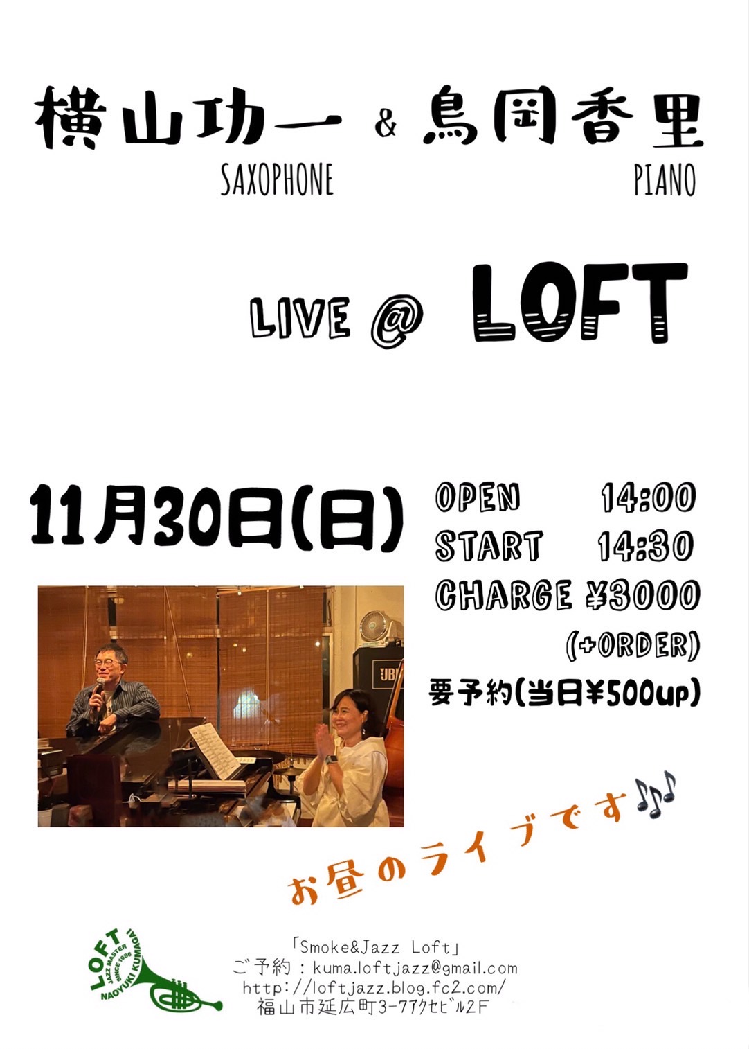 | 2025年11月30日(日) 横山功一× 鳥岡香里 DUO | ||