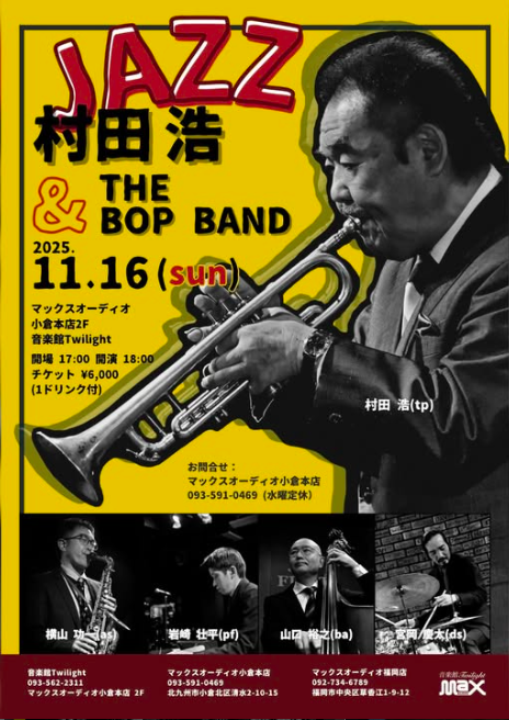 | 2025年11月16日(日) 村田浩&THE BOP BAND 2025年秋 〜18252 DAYS TOUR〜 | ||
