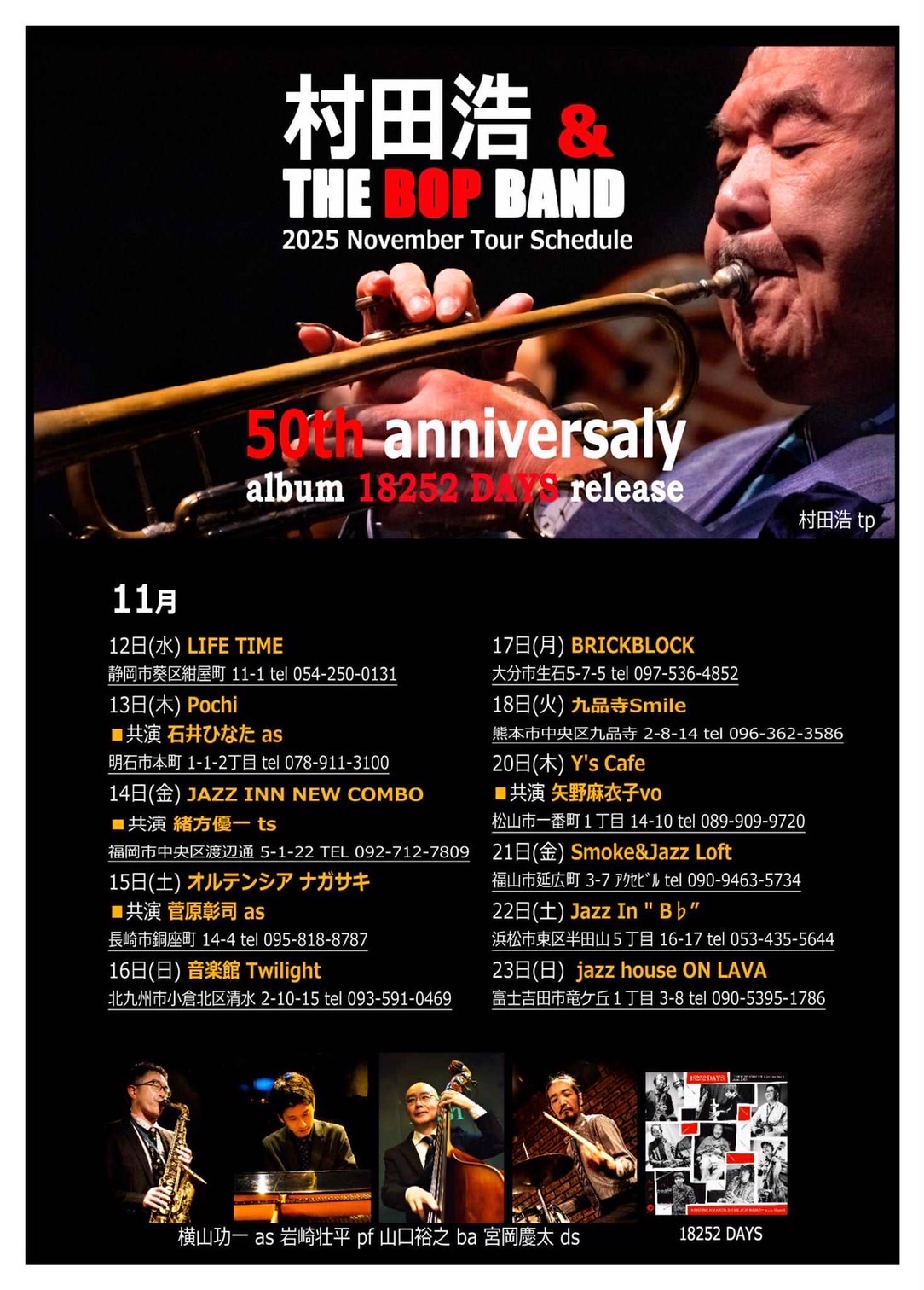 | 2025年11月22日(土) 村田浩&THE BOP BAND 2025年秋 〜18252 DAYS TOUR〜 | ||