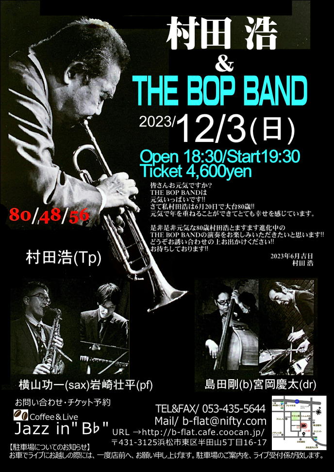 | 2023年12月3日(日) 村田浩&THE BOP BAND 2023 晩秋・西日本ツアー | ||