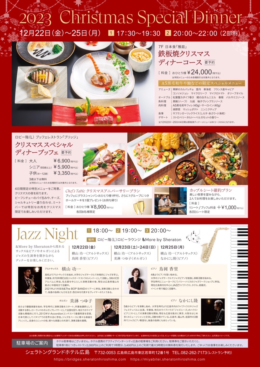 | 2023年12月25日(月) シェラトングランドホテル広島 Jazz Night | ||