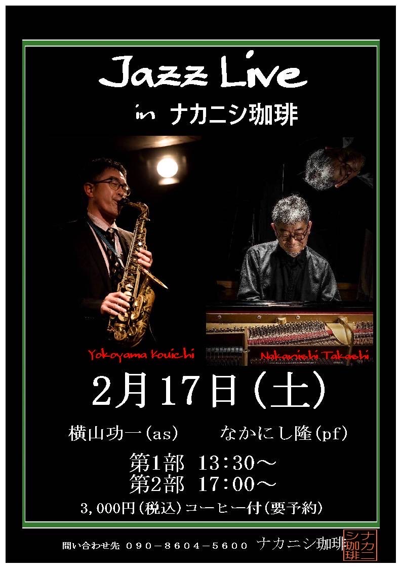 | 2024年2月17日(土) Jazz Live in ナカニシ珈琲 | ||