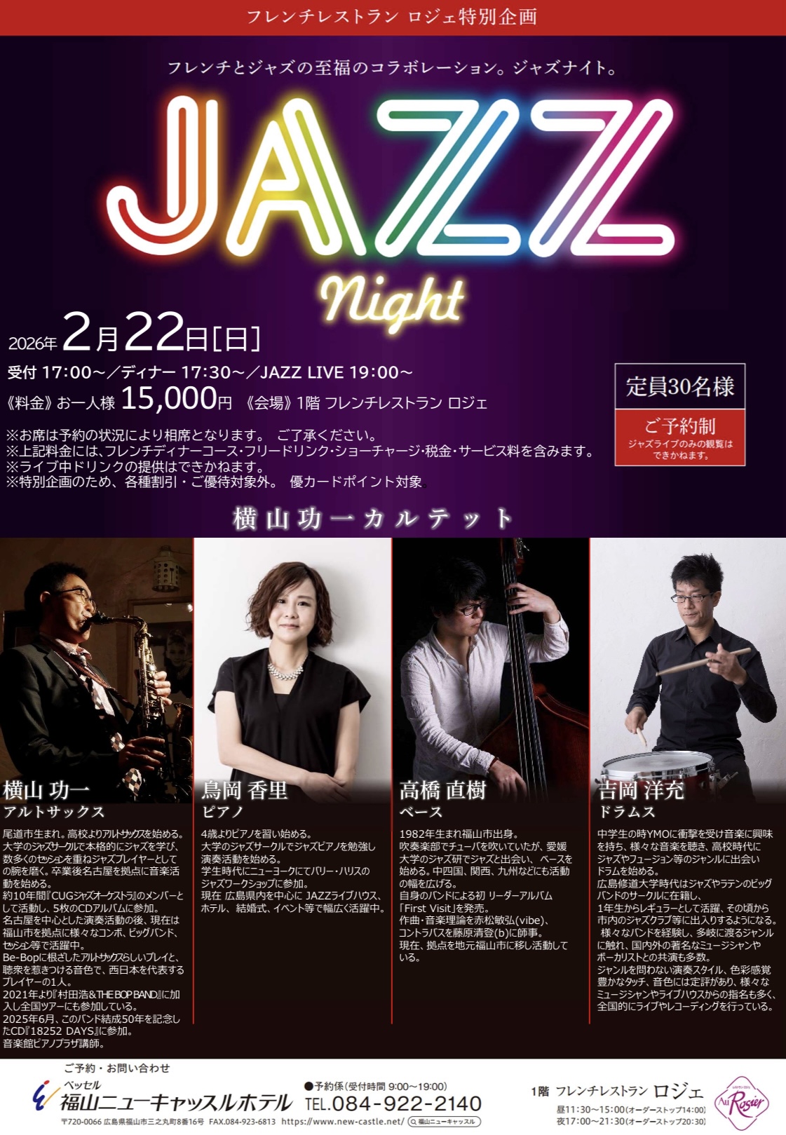 横山功一(as)、鳥岡香里(p)、赤星敬太(b)、吉岡洋充(ds)