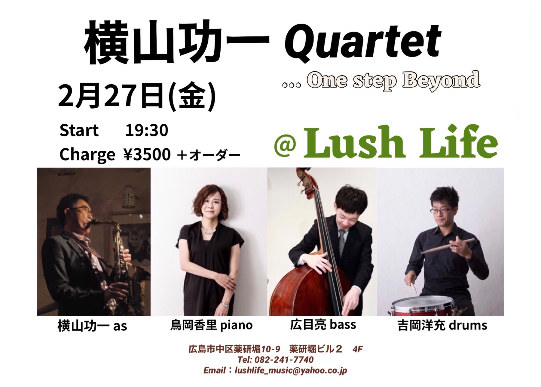 横山功一(as)、鳥岡香里(p)、高橋直樹(b)、吉岡洋充(ds)
