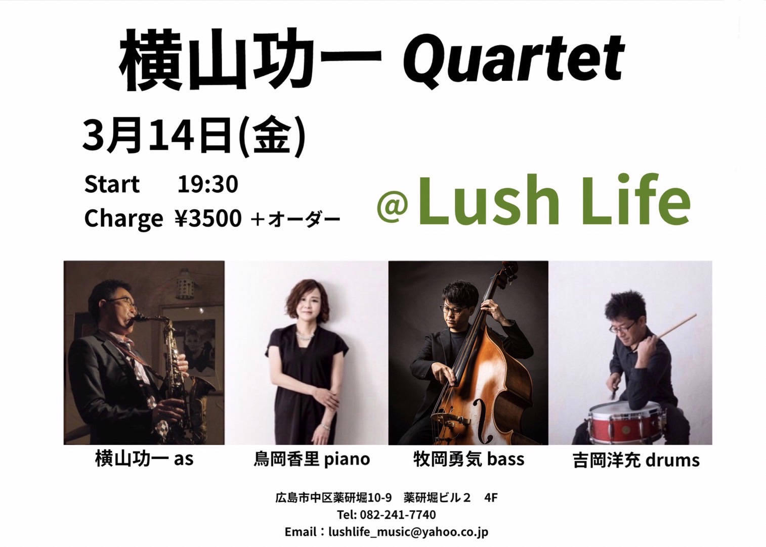 | 2025年3月14日(金) 横山功一カルテット | ||