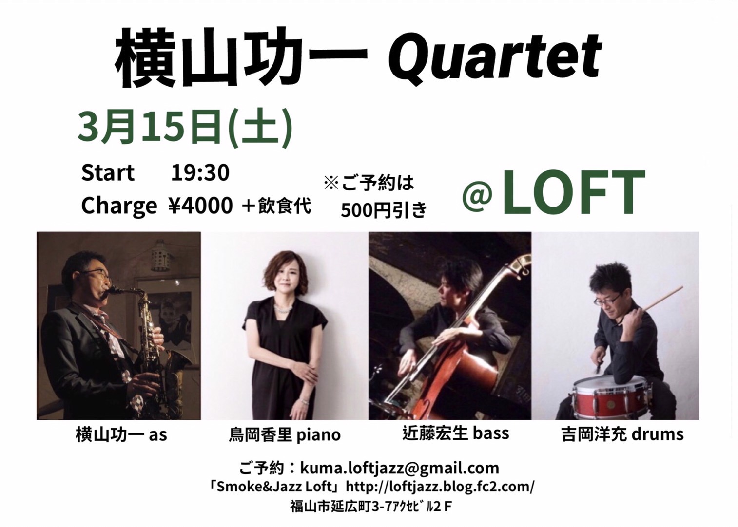 | 2025年3月15日(土) 横山功一カルテット | ||