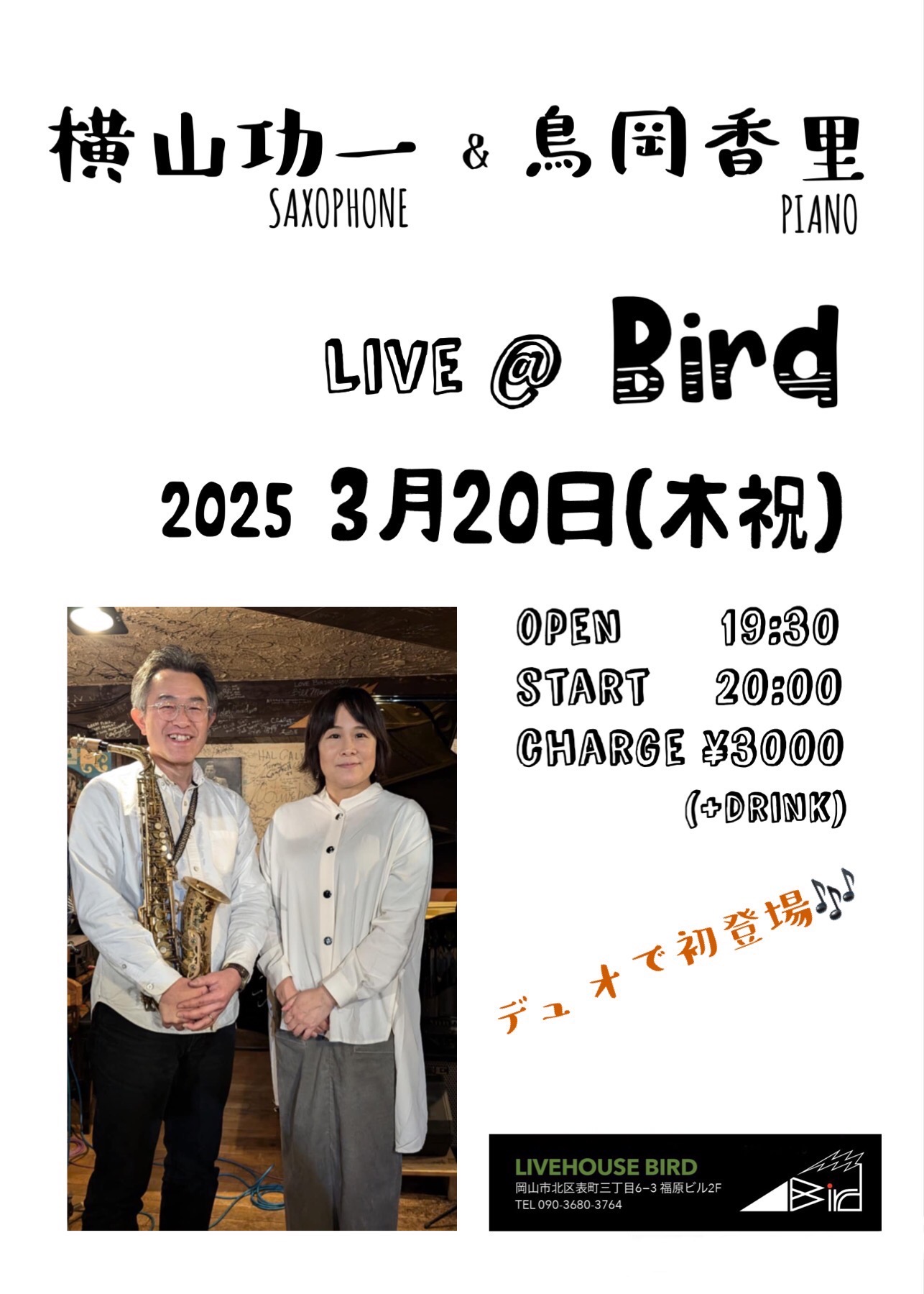 | 2025年3月20日(木) 横山功一× 鳥岡香里 DUO | ||