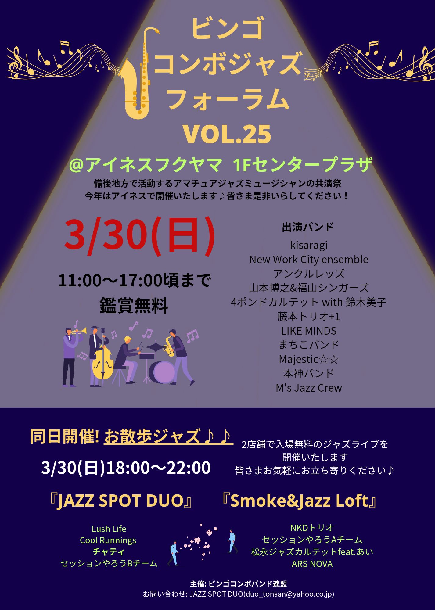 | 2025年3月30日(日) びんご・コンボジャズ・フォーラム vol.25 | ||